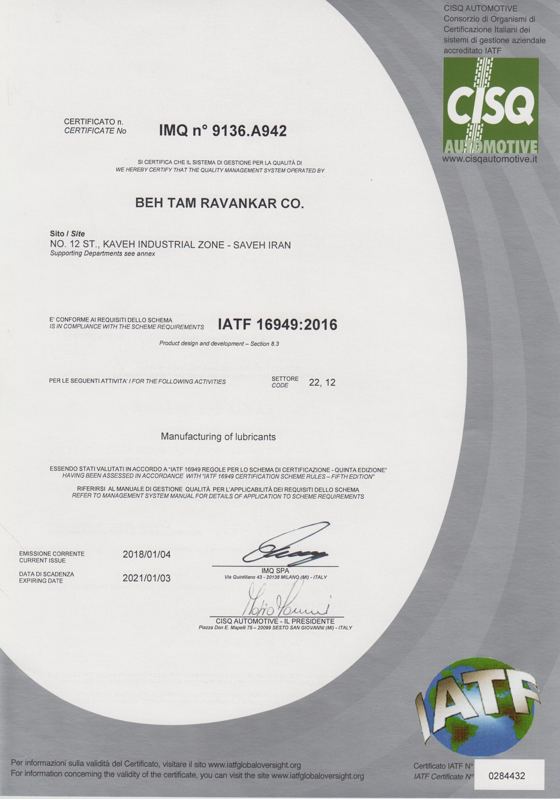 شرکت بهتام روانکار به عنوان تولیدکننده روانکارهای خودرویی، صنعتی و انواع گریسهای عمومی و تخصصی و ضدیخ در سال 1381 تأسیس گردید. کارخانه این شرکت با ظرفیت تولید سالیانه 30،000 تن روانکارهای موتوری و صنعتی، 3،000 تن گریس و ضدیخ در شهر صنعتی کاوه واقع در استان مرکزی واقع گردیده است. ماشین آلات تولید گریس و انواع روغن به صورت تولید مدولار مطابق با آخرین تکنولوژی روز دنیا طراحی، ساخته و از فرانسه به محل کارخانه این شرکت ارسال گردیده است. محصولات متنوع این شرکت برای مصارف خودرویی، صنعتی، کشاورزی و دریایی و با بهره گیری از تکنولوژی و فرمولاسیون شرکت توتال فرانسه تولید و در بازار ایران به فروش می رسد.